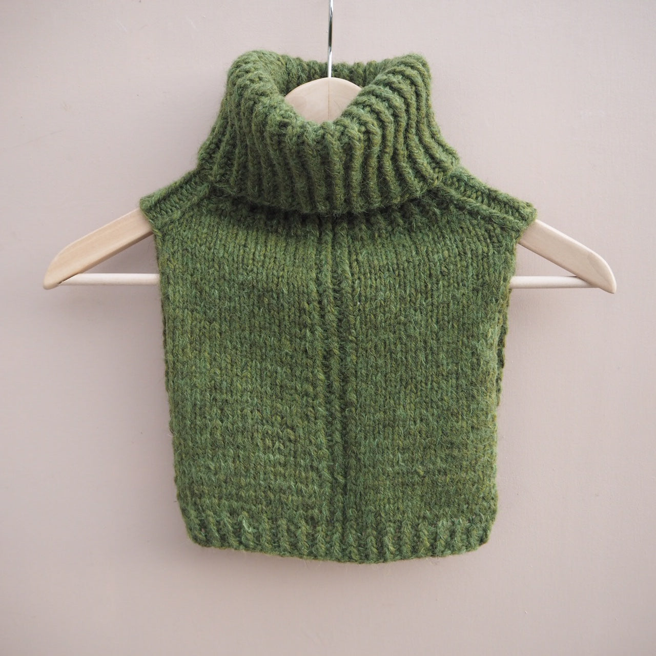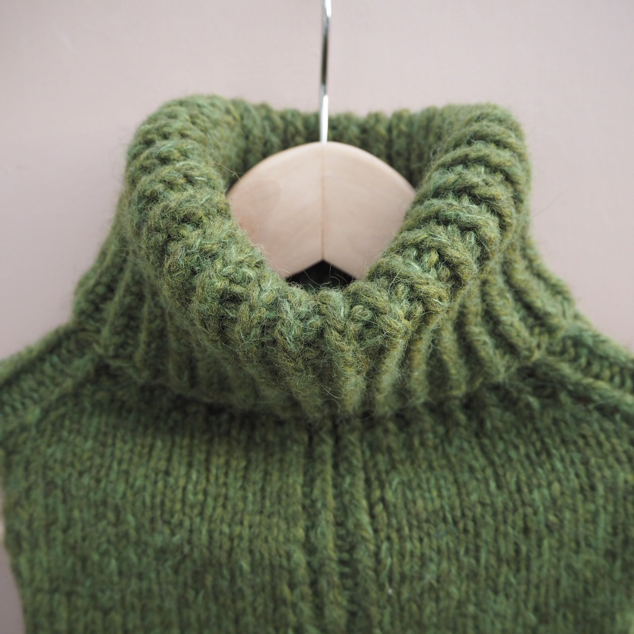 Denne strikkahalsen har vridde vrangmasker for eit meir definert uttrykk på plagget.